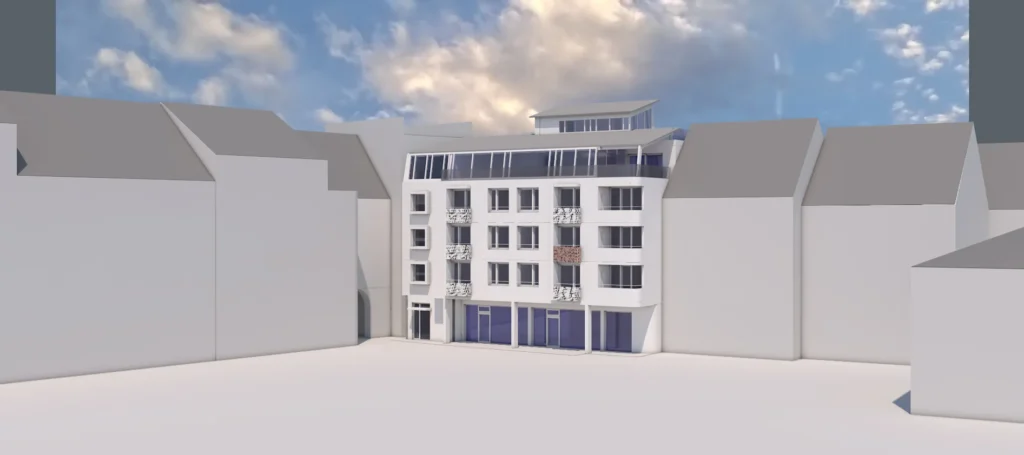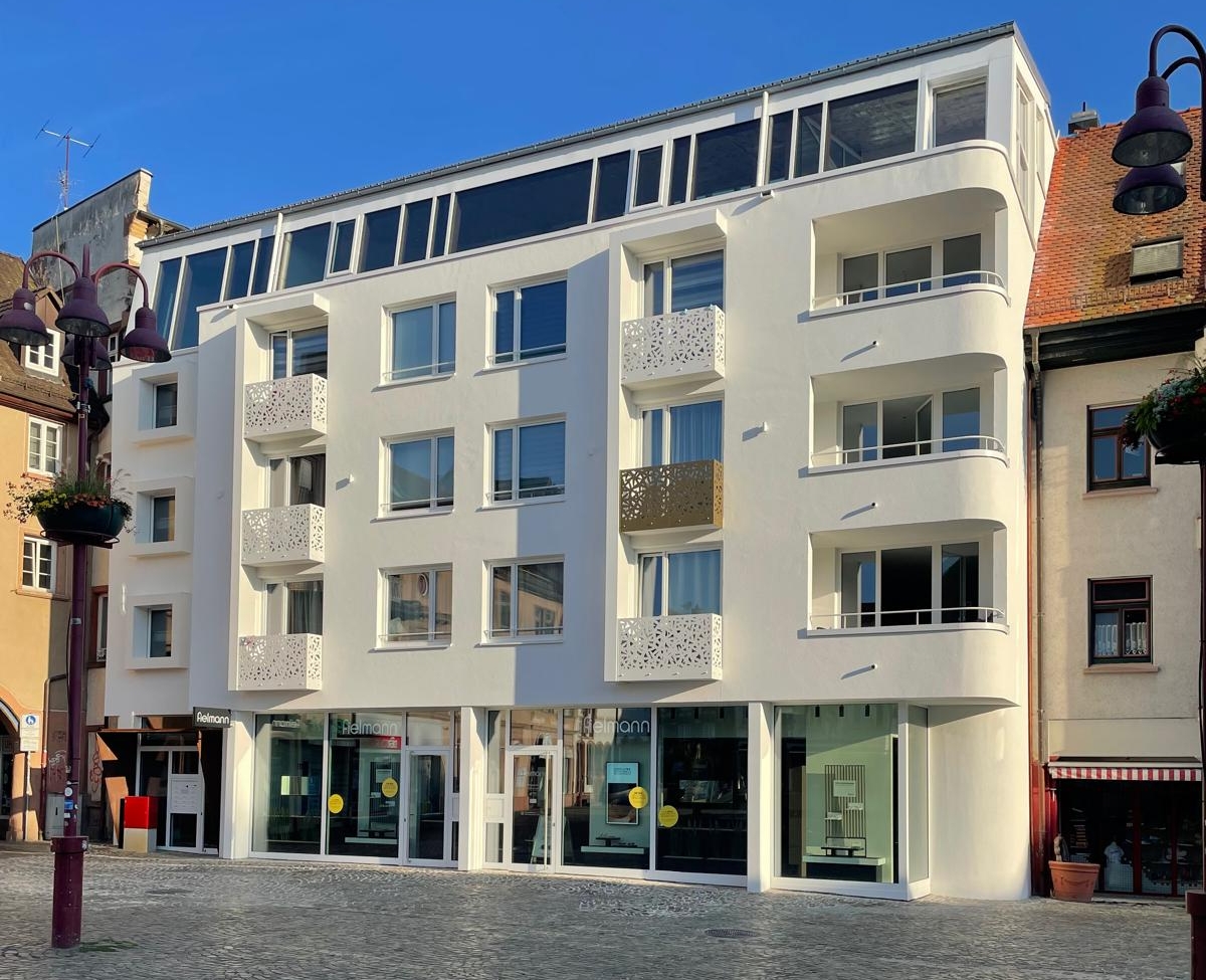 Aufwertung des Marktplatzes in Lahr mit 5-stöckigem Wohn- und Geschäftshaus.