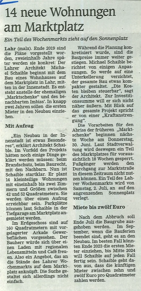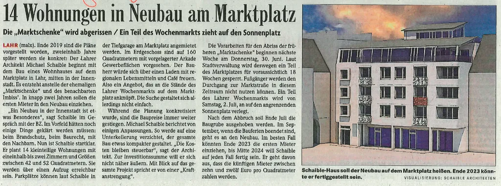 SCHAIBLE-HAUS, Neubau von 14 Apartmentwohnungen am Marktplatz, Lahr